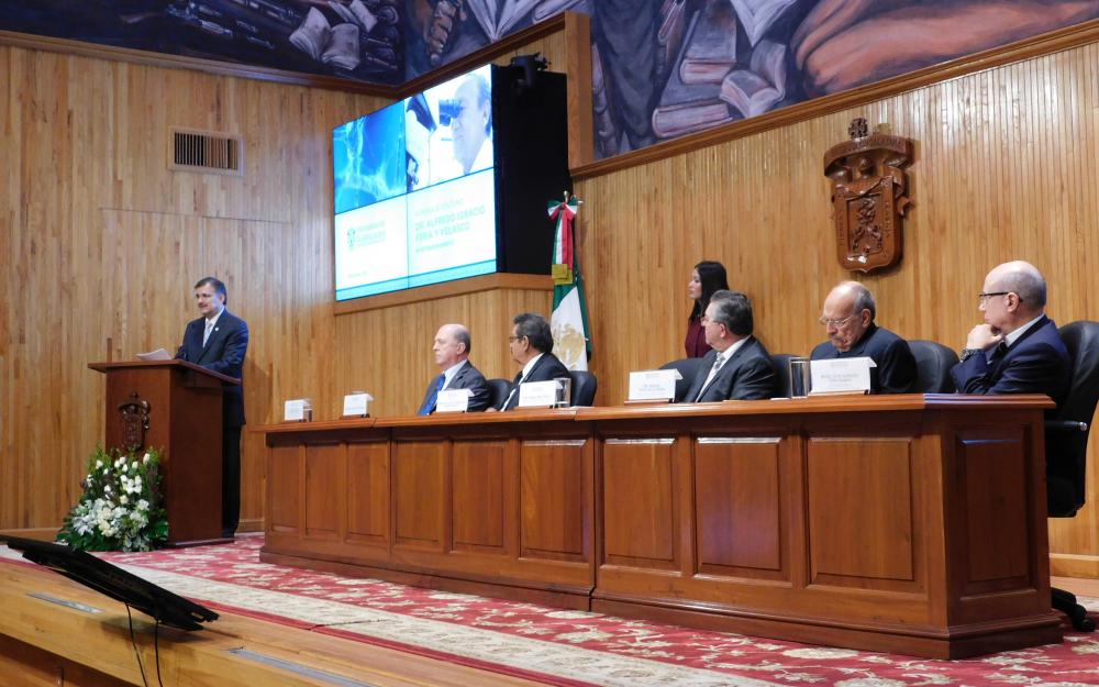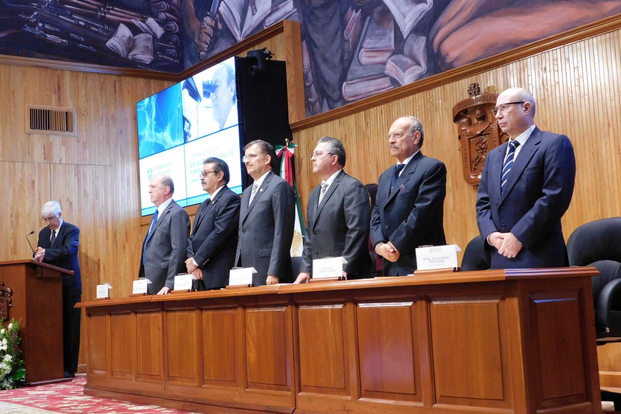 En una ceremonia efectuada este miércoles en el paraninfo “Enrique Díaz de León” se rindió un minuto de silencio en su memoria, se describió su trayectoria y calidad humana, además, destacaron en él un ejemplo a seguir.