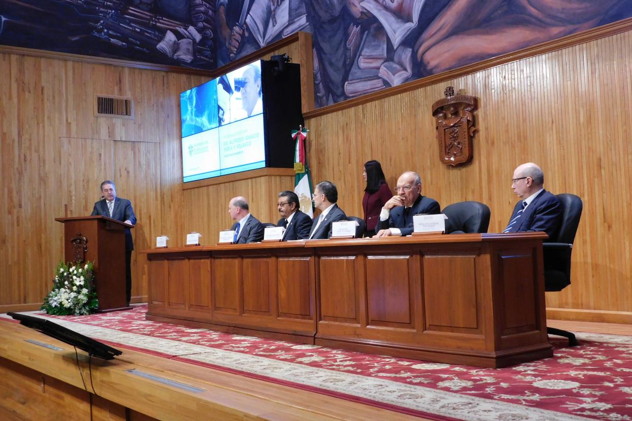 El Rector del Centro Universitario de Ciencias Biológicas y Agropecuarias (CUCBA), doctor Carlos Beas Zárate –quien convivió 40 años con el homenajeado–, destacó sus saberes y capacidades en el estudio del desarrollo del sistema nervioso central y para conocer los mecanismos de la epilepsia.
